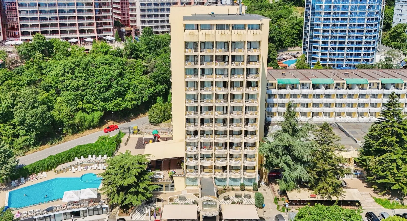 Hotel Shipka je elegantné štvorhviezdičkové stredisko s bohatou tradíciou, ktoré sa nachádza len niekoľko krokov od centra populárneho letoviska Zlaté piesky. Tento hotel ponúka návštevníkom dokonalé útočisko, kde si môžu vychutnať širokú škálu služieb a pohodlie, ktoré zanechá na každého príjemný dojem. Nielenže je hotel skvele situovaný, ale poskytuje aj prístup k krásnej piesočnatej pláži s oslnivými vlnami Čierneho mora, len kúsok od svojich dverí.