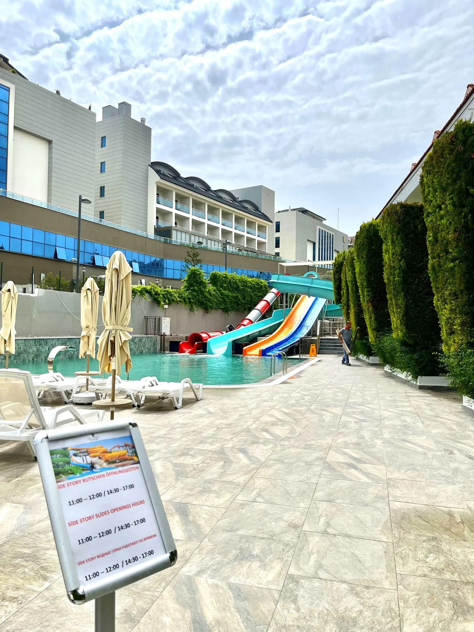 - Dva vonkajšie bazény, vnútorný bazén a detský bazén so šmykľavkami