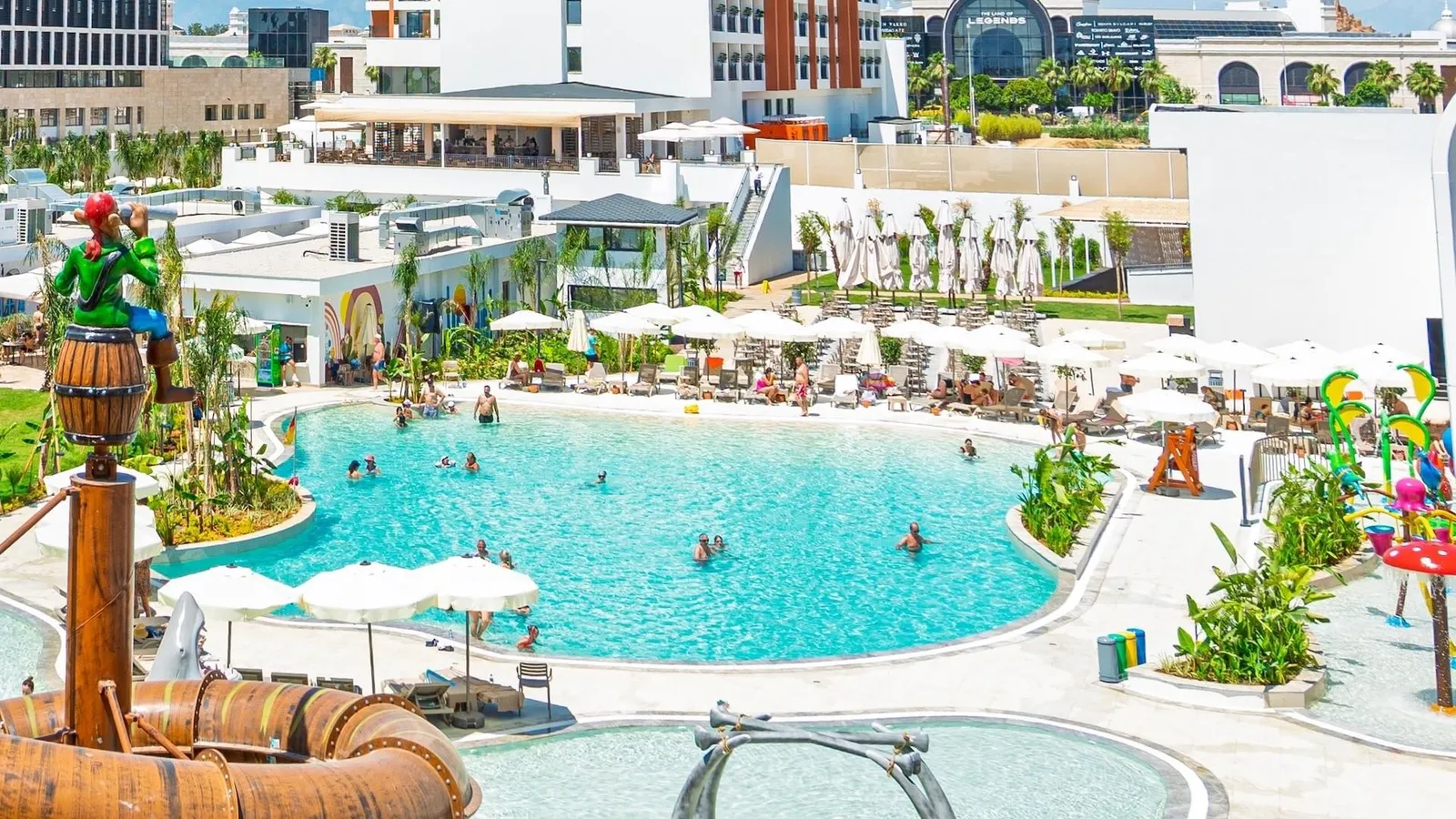 Milovníci mora si určite užijú piesočnatú pláž, ktorá sa nachádza približne 4 km od hotela, pričom je zabezpečená kyvadlová doprava, ktorá trvá približne 6 minút. V areáli hotela sa nachádza 5 vonkajších bazénov, vrátane hlavného bazéna pri bloku A, bazéna pri bloku B, detského bazéna a jedinečného „Maldives" bazéna so šikmým vstupom a prvkami piesku. Lehátka, slnečníky a osušky pri bazéne sú k dispozícii bezplatne.