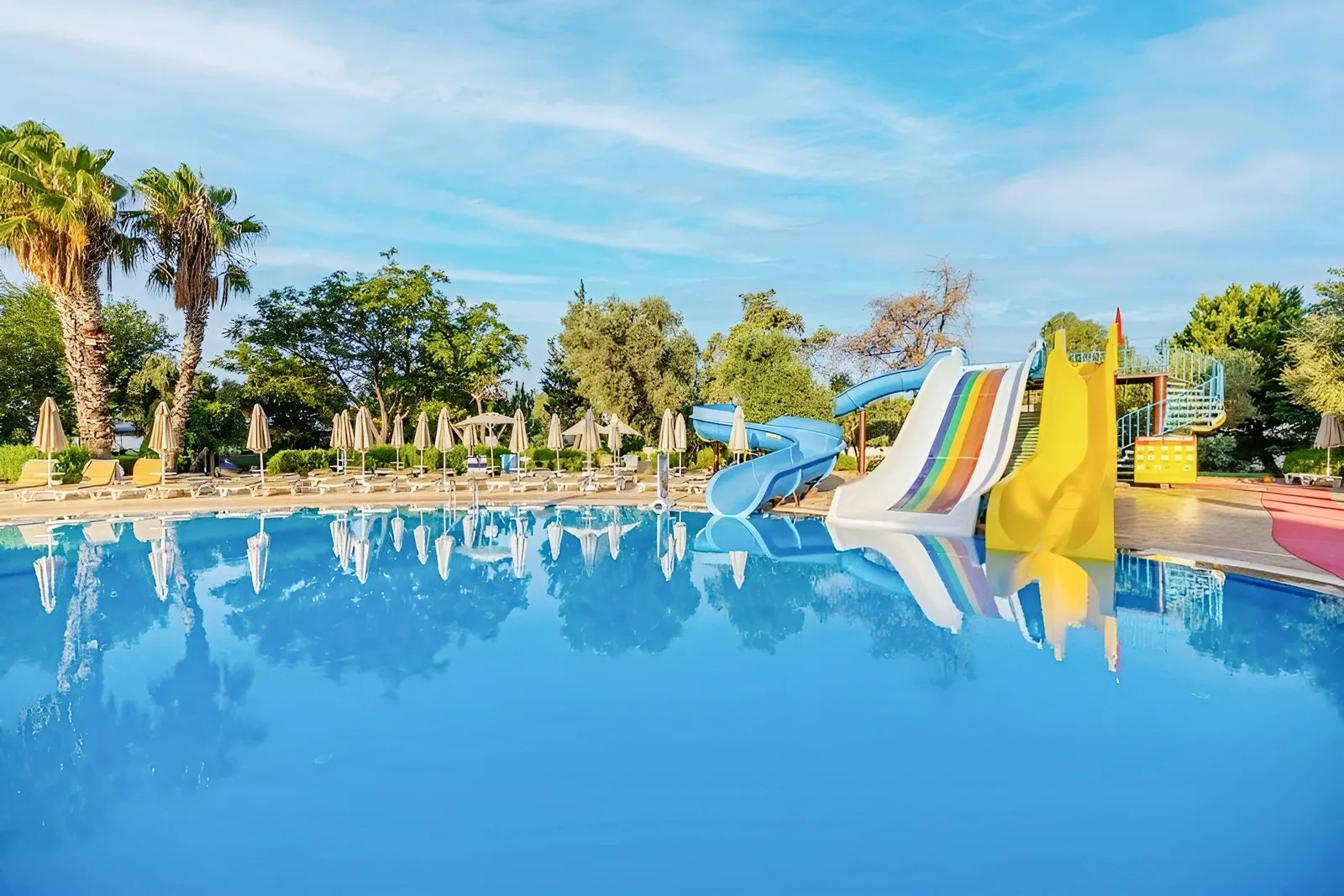 Hotel ponúka vstupnú halu s recepciou, hlavnú budovu s piatimi podlažiami a štyrmi výťahmi. Medzi služby patrí snack bar, bary, konferenčná miestnosť, obchodíky, práčovňa a kaderník. V areáli sa nachádzajú dva bazény, detský bazén, tri šmykľavky a terasa na opaľovanie, ako aj mini klub pre najmenších. Lehátka, slnečníky a osušky sú pri bazénoch aj na pláži bezplatne dostupné; za poplatok sú k dispozícii aj pavilóny na pláži.