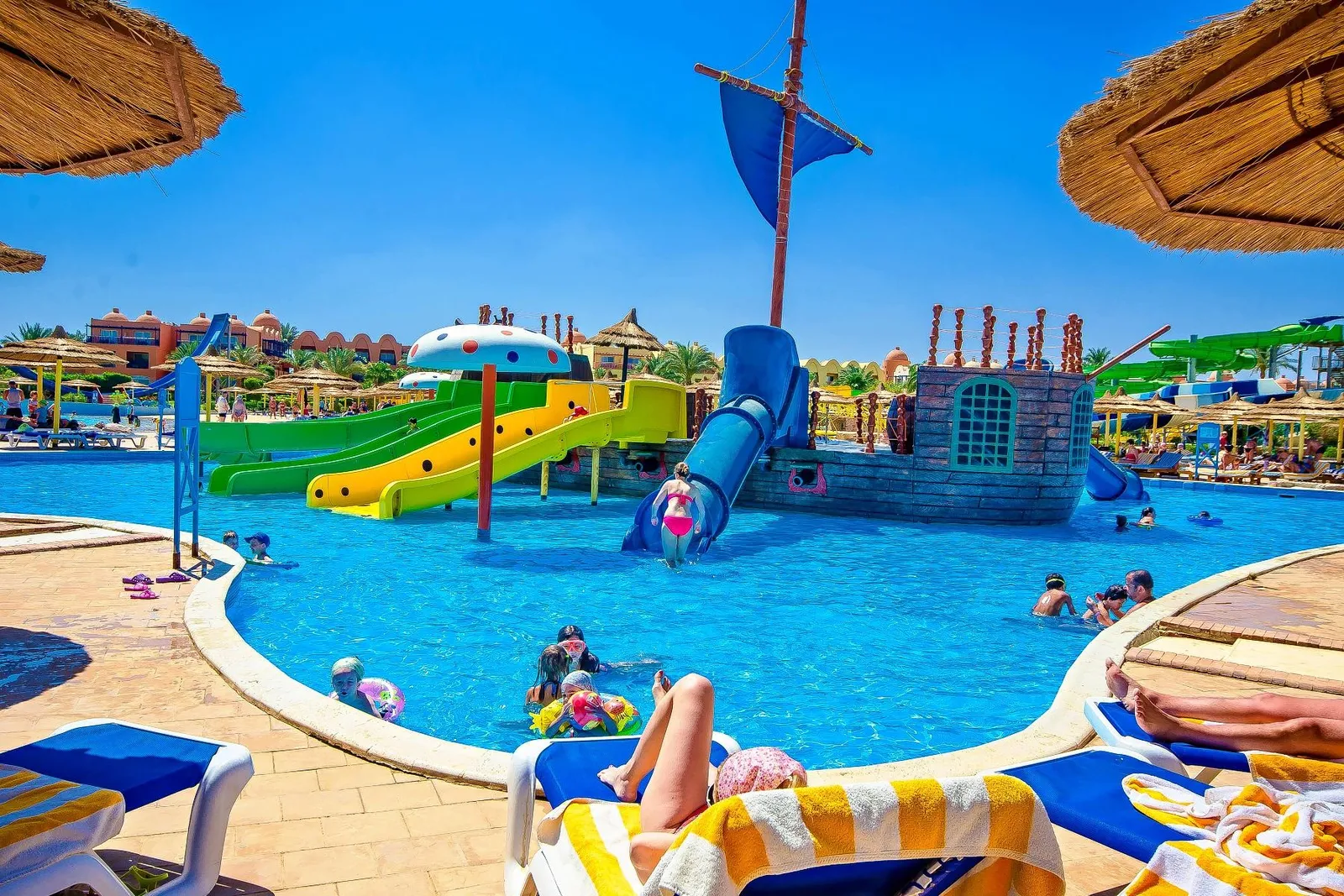 Titanic Beach Spa & Aqua Park je rozsiahly resort nachádzajúci sa na nádhernej piesočnatej pláži. Tento luxusný komplex ponúka jednu z najväčších a najvybavenejších vodných parkov v Hurghade, spolu s profesionálnym fitness centrom a relaxačným spa. Resort je ideálny pre aktívnu i pokojnejšiu dovolenku, a je vhodný najmä pre rodiny s deťmi.