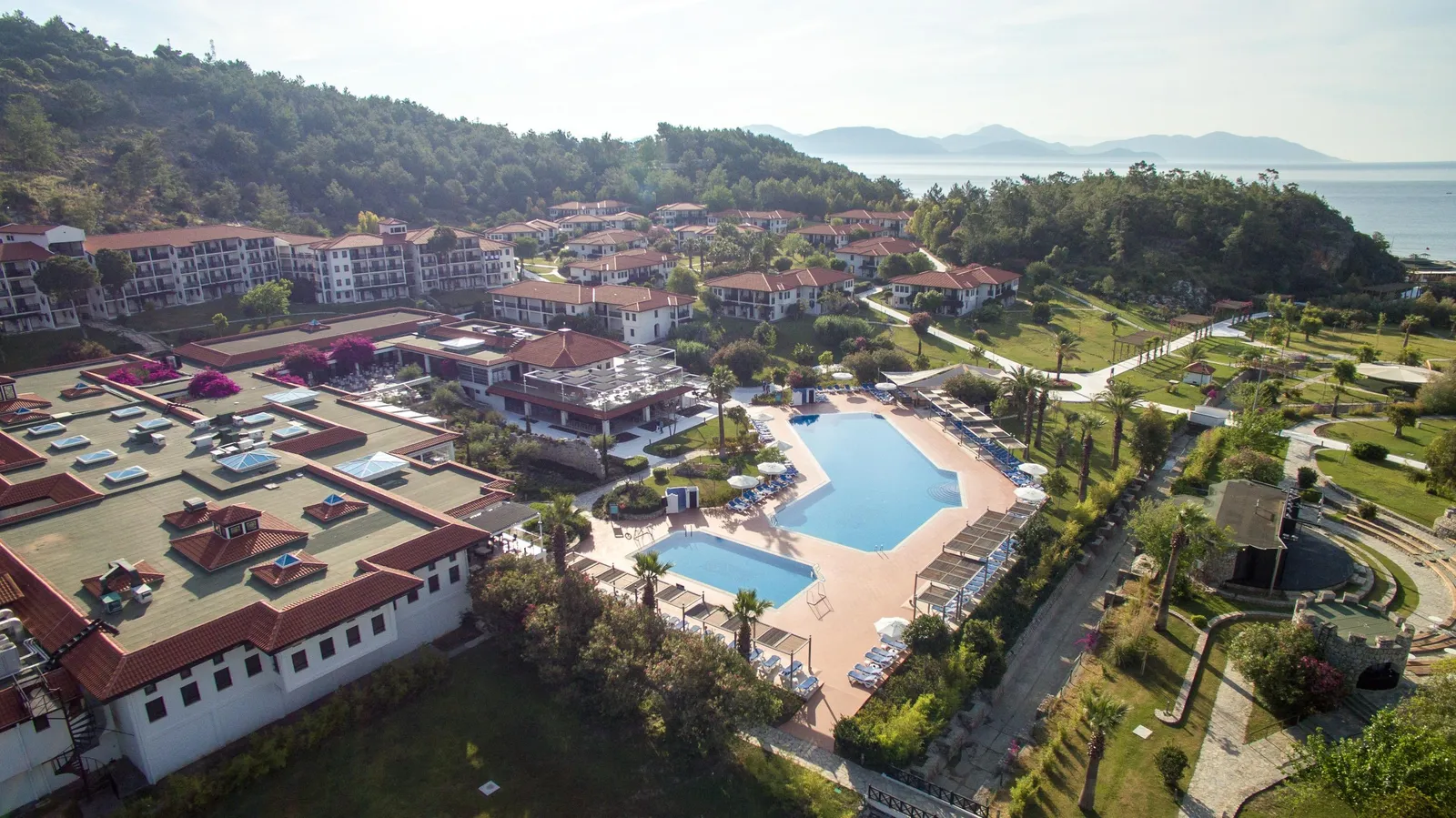 Piesočnatá pláž s pozvoľným vstupom do mora sa nachádza priamo vedľa hotela a je ocenená modrou vlajkou za jej čistotu. Hostia môžu využiť mólo, plážový bar, slnečníky, ležadlá a osušky (výmena je spoplatnená), ako aj pavilóny a špeciálne platformy pre osoby so zníženou pohyblivosťou. V areáli rezortu sú tiež dva veľké bazény, detské bazény a slnečná terasa s dostatkom miest na relaxáciu.