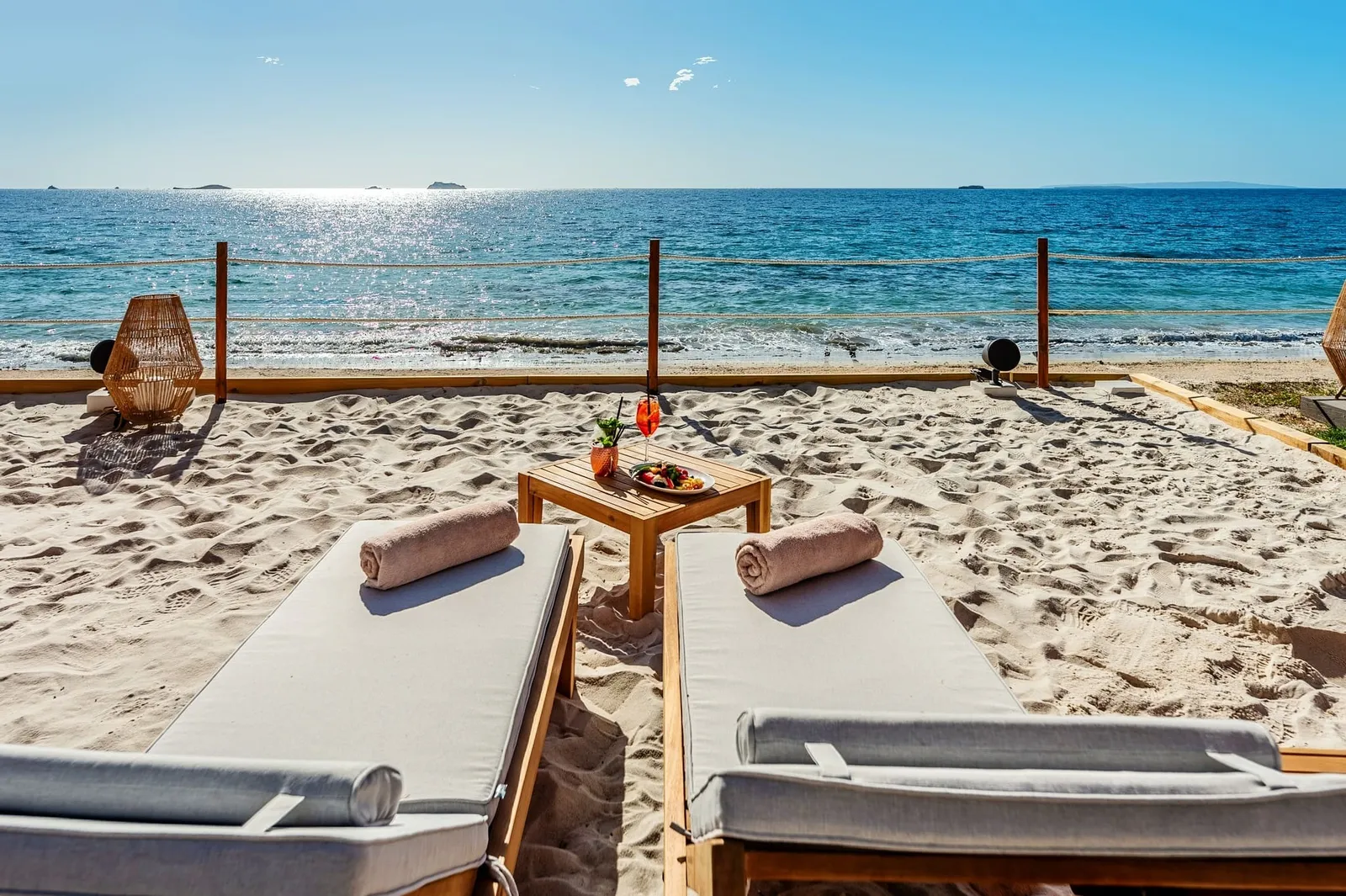 - Plážový klub s reštauráciou, barom, ležadlami a posedením