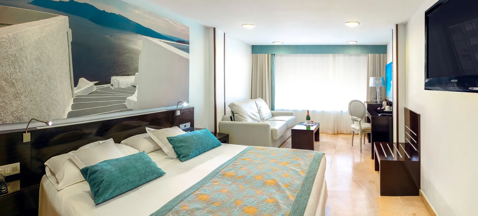 Pláž Playa de Poniente sa nachádza len kúsok od hotela, pričom je oddelená promenádou a prímorskou komunikáciou; lehátka a slnečníky sú k dispozícii za poplatok.