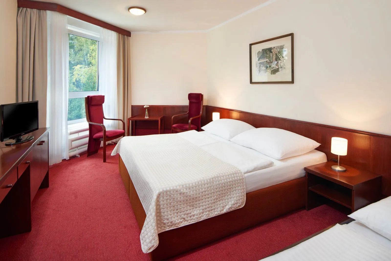 Hotel ponúka dvojlôžkové izby typu Standard s možnosťou prístelky, ktoré sú vybavené vlastným sociálnym zariadením, sušičom na vlasy, LCD TV, telefónom a trezorom. Balkón je k dispozícii za poplatok. Na požiadanie sú k dispozícii rodinné izby s poschodovou posteľou a apartmán Superior s oddelenou miestnosťou, ako aj mezonetové izby s kapacitou až pre 6 osôb.