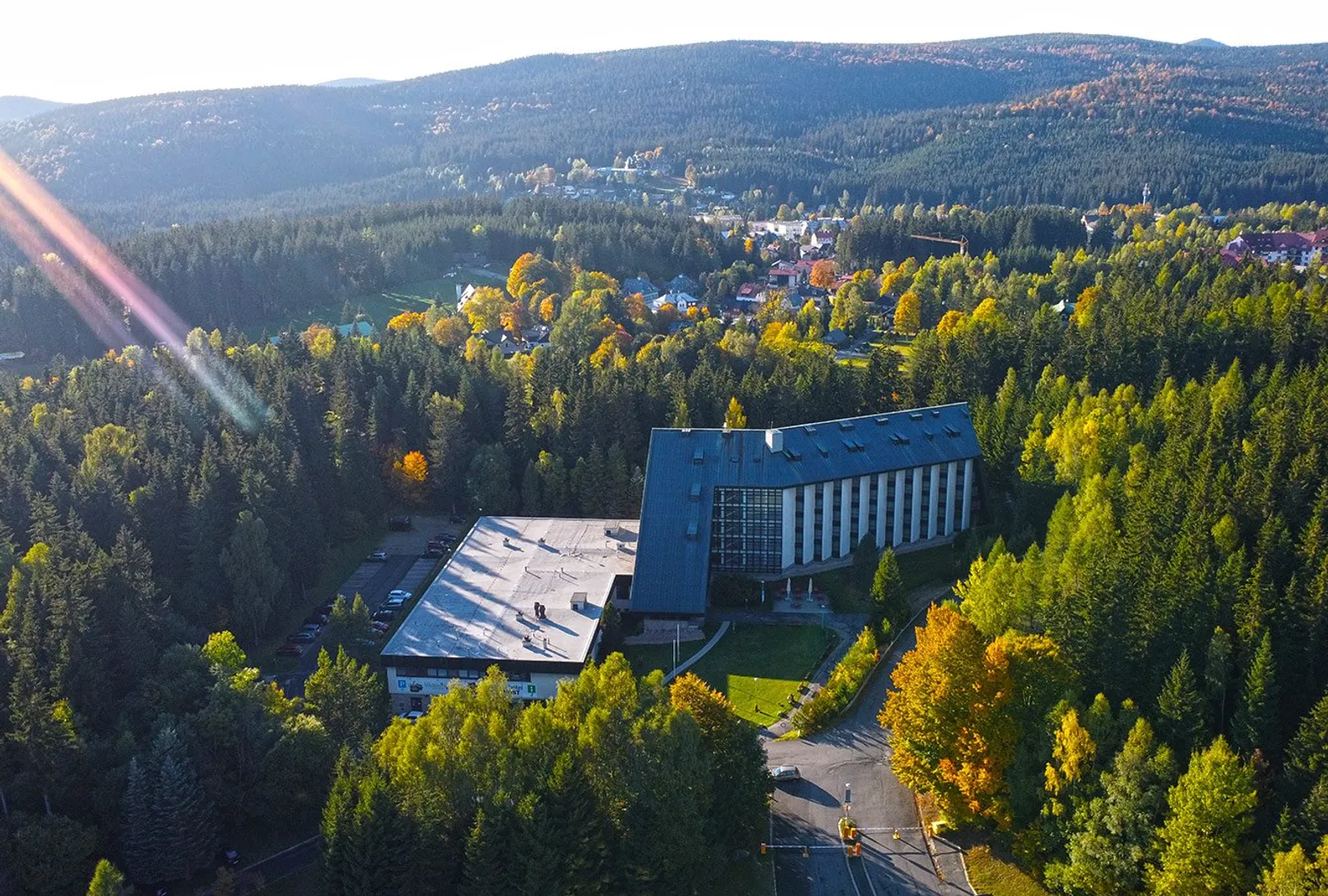 Hotel sa nachádza na miernom svahu, len 5 minút chôdze od centra Harrachova, pričom lanovka na Čertovu horu je vzdialená iba 10 minút pešo.
