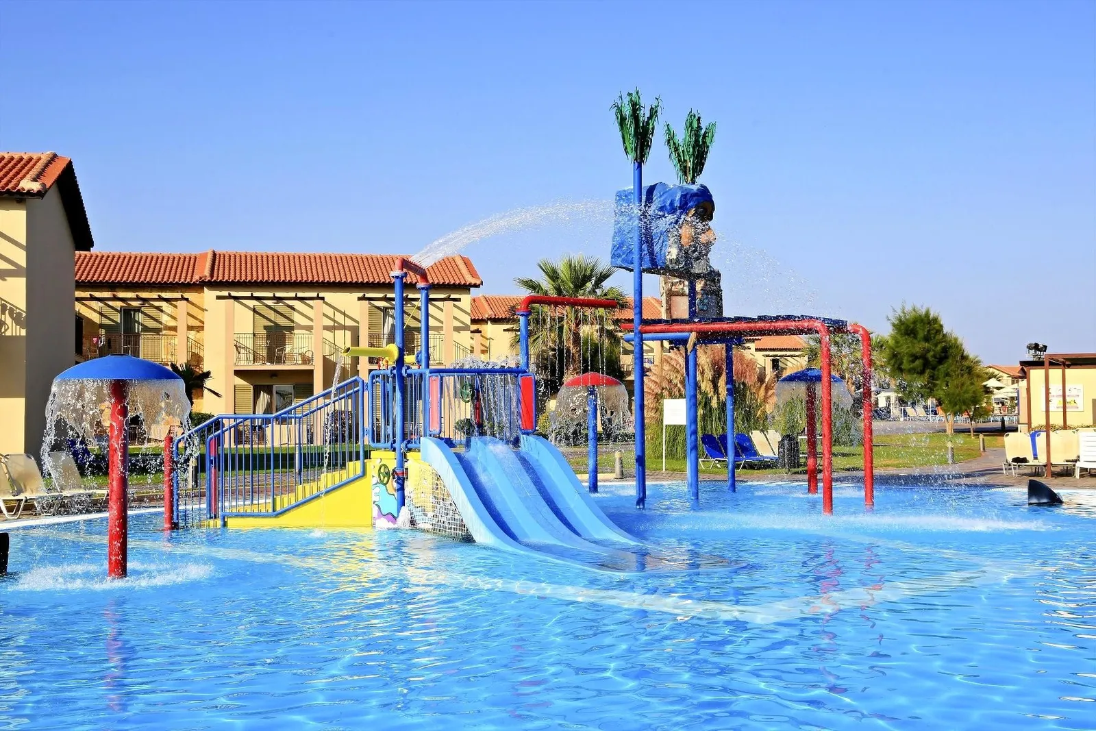 Rezort disponuje relaxačným bazénom, bazénom s umelými vlnami, veľkým bazénom s toboganmi a detským bazénom. Pre najmenších hostí je pripravený vodný park a rozmanitý animačný program. Lehátka, slnečníky a osušky sú k dispozícii zdarma v areáli.