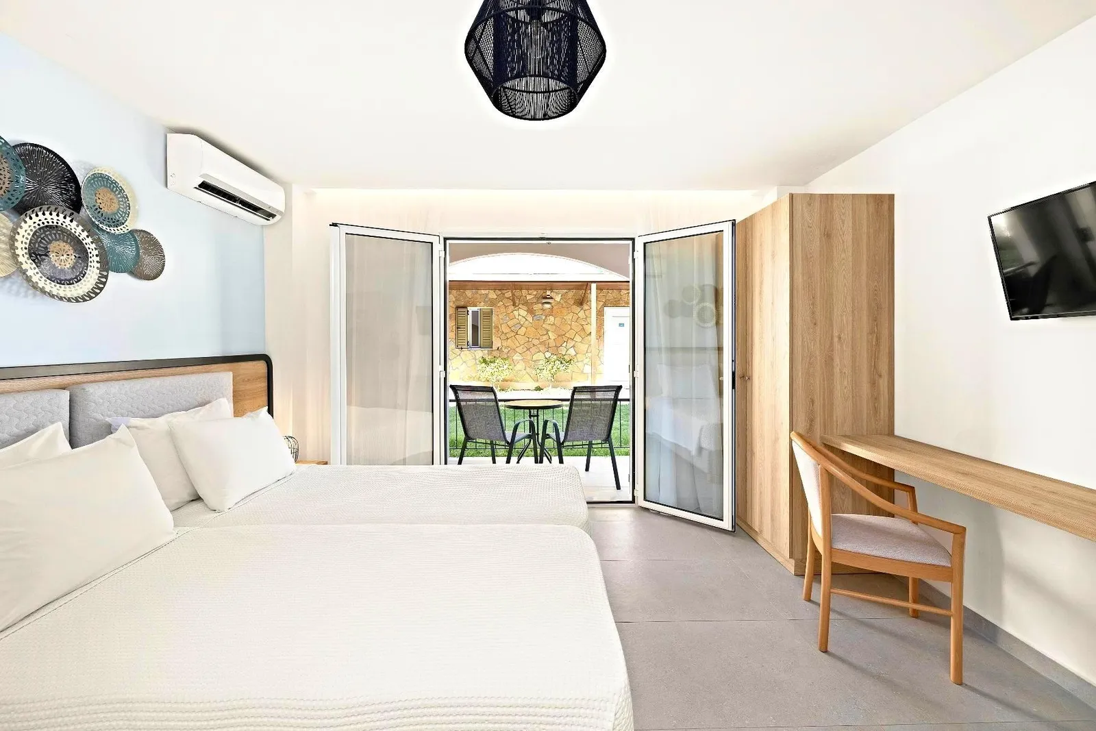 Hlavná budova a 21 dvojpodlažných domčekov sú umiestnené v krásne udržiavanej záhrade a poskytujú pohodlné izby, ktoré sú vybavené individuálnou klimatizáciou, televíziou so satelitným príjmom, trezorom, miniledničkou, ako aj setom na prípravu kávy a čaju pri balkóne alebo terase. K dispozícii sú komfortné dvojlôžkové izby Superior, rodinné izby a priestranné suity s výhľadom do záhrady alebo na more.