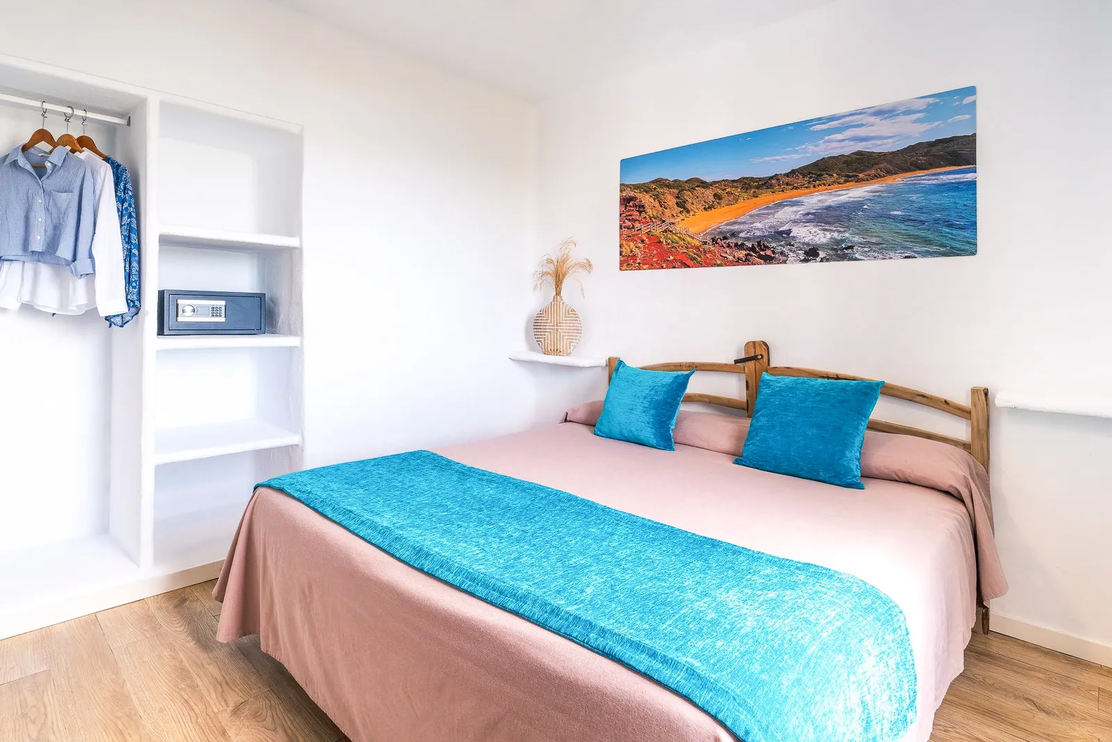 Apartmán sa skladá z obývacej časti a oddelenej spálne, vybavený je kúpeľňou/WC (vrátane sušiča na vlasy), klimatizáciou, TV, telefónom, WiFi pripojením a minibarmi (za poplatok). Trezor je taktiež k dispozícii za poplatok a apartmán má svoj vlastný balkón alebo terasu. Piesočná pláž Playas de Fornells, ktorá je chránená v zátoke, sa nachádza len cca 20 metrov od hotela. Lehátka a slnečníky sú za poplatok.